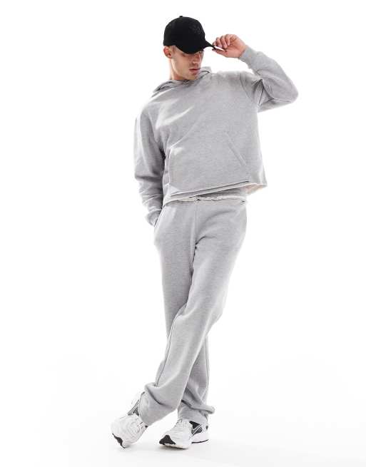 ASOS DESIGN – Set in Grau mit unverarbeitetem Saum aus Kapuzenpullover und Jogginghose
