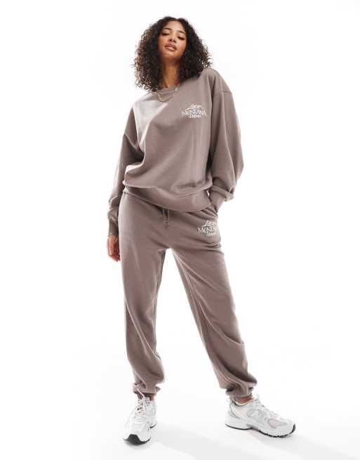 ASOS DESIGN – Set in Pilzbraun mit Oversize-Sweatshirt und Jogginghose mit aufgestickter „Montana“-Grafik