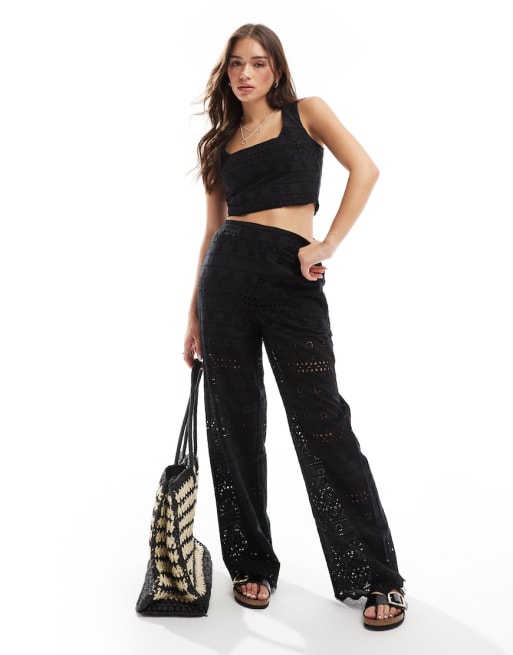 ASOS DESIGN – Set in Schwarz mit Lochstickerei