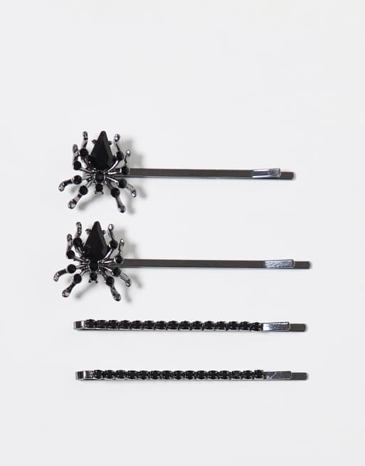 ASOS DESIGN – Set mit 4 Haarspangen in Silberoptik mit strassverziertem Spinnen-Design