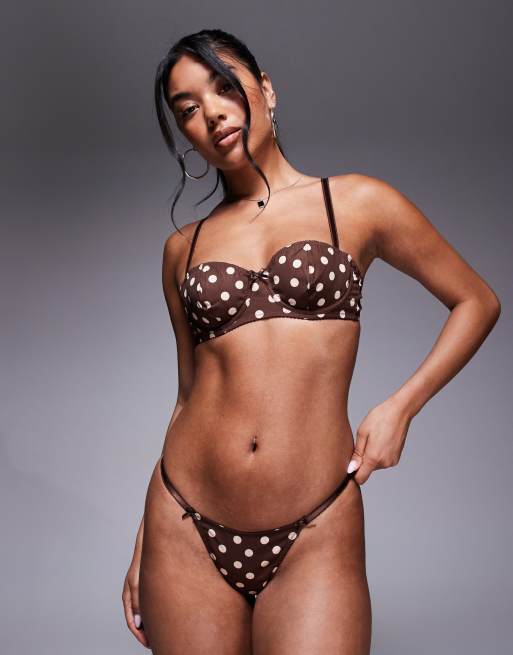 ASOS DESIGN – Shay – Gepunkteter Tanga in Schokobraun und Cremeweiß