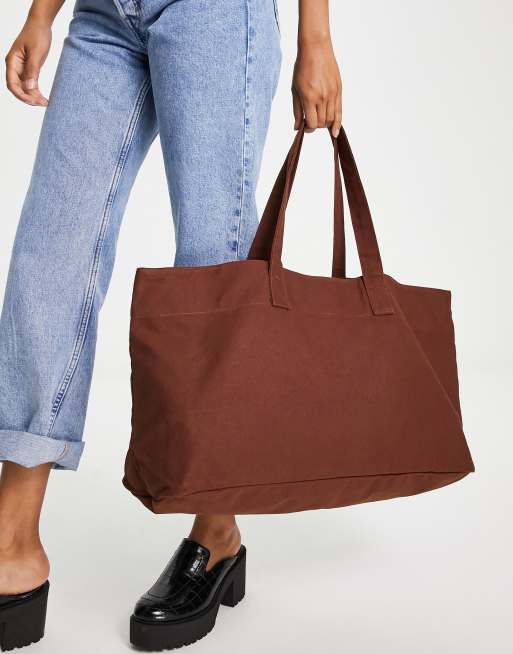 ASOS DESIGN – Shopper aus Baumwolle in Schokobraun
