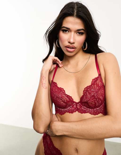 ASOS DESIGN – Sienna – Tief ausgeschnittener Bügel-BH aus Spitze in Burgunderrot