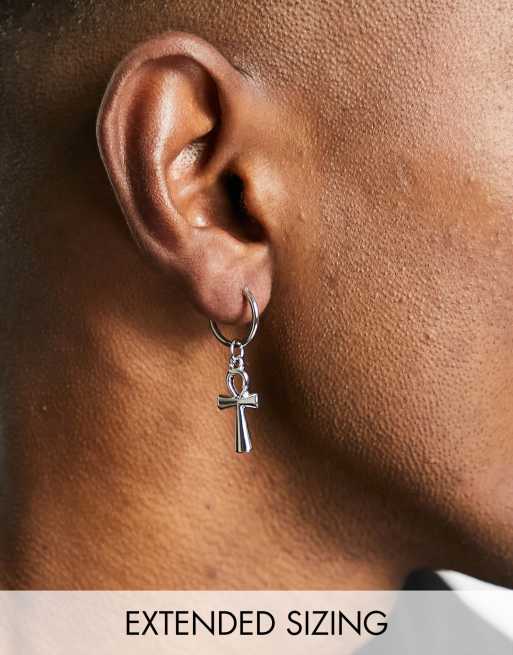 ASOS DESIGN – Silberfarbene Creolen mit Ankh-Anhänger