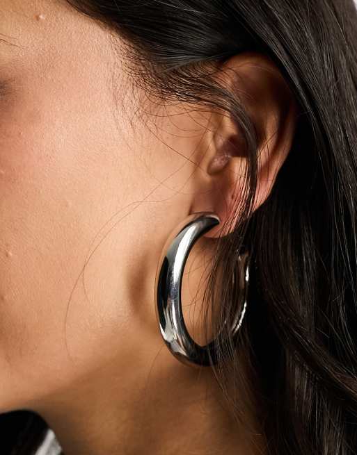 ASOS DESIGN – Silberfarbene, dicke Creolen, 50 mm