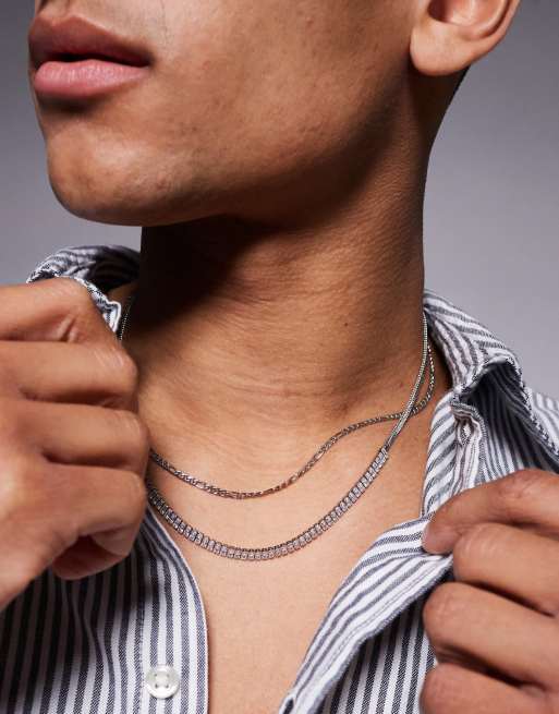 ASOS DESIGN – Silberfarbene Festival-Halskette im 2er-Pack aus wasserfestem Edelstahl mit Gliedern und stabförmigen Kristallelementen