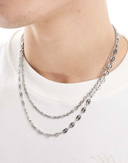 ASOS DESIGN – Silberfarbene Festival-Halskette im 2er-Pack aus wasserfestem Edelstahl mit unterschiedlichen Elementen