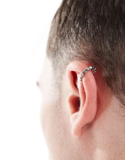 ASOS DESIGN – Silberfarbene Festival-Ohrklammer mit geometrischem Cut-out-Muster