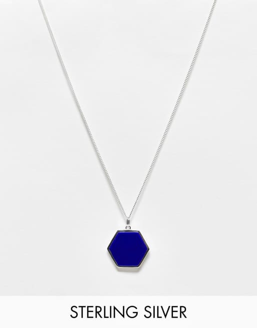 ASOS DESIGN – Silberfarbene Halskette aus Sterlingsilber mit blauem Lapislazuli-Anhänger