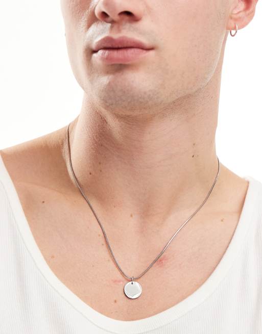 ASOS DESIGN – Silberfarbene Halskette aus wasserfestem Edelstahl mit rundem Anhänger