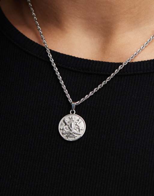 ASOS DESIGN – Silberfarbene Halskette aus wasserfestem Edelstahl mit rundem Anhänger