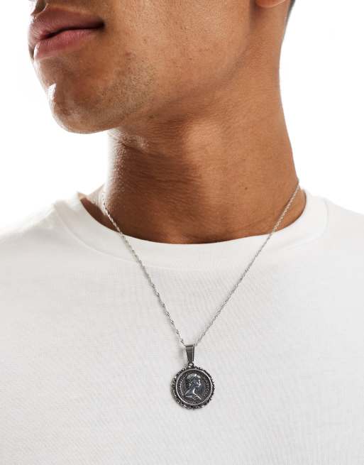 ASOS DESIGN – Silberfarbene Halskette aus wasserfestem Edelstahl mit rundem Souverän-Anhänger