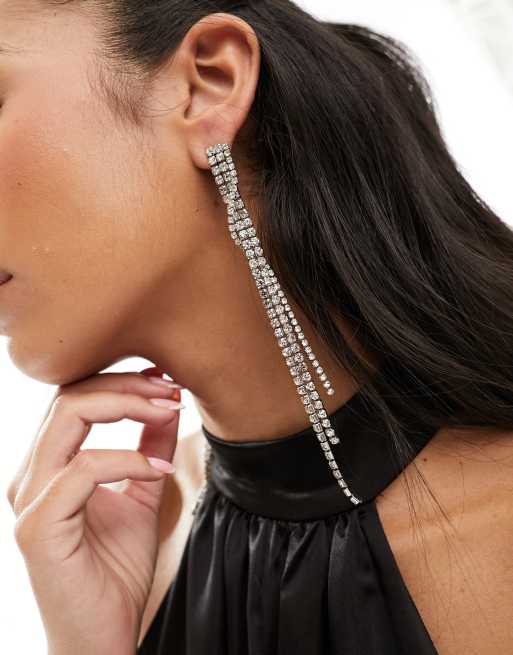 ASOS DESIGN – Silberfarbene Hängeohrringe mit strassbesetzten Bändern