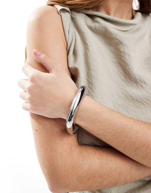 ASOS DESIGN – Silberfarbener Armreif mit eckigem Design