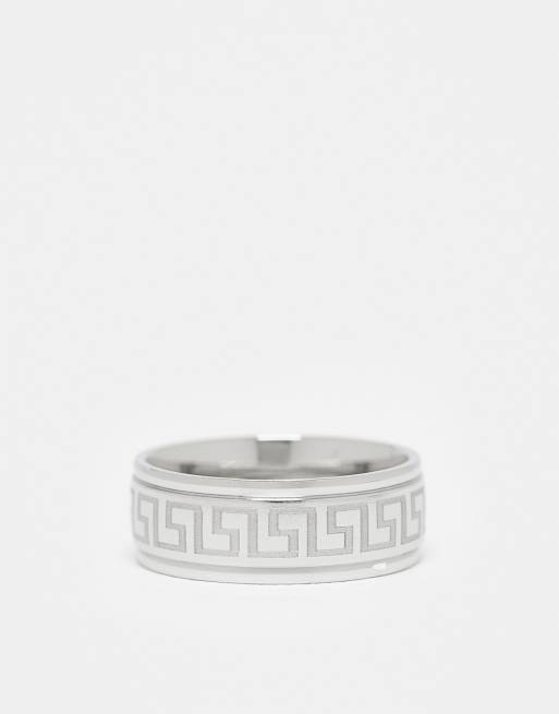 ASOS DESIGN – Silberfarbener Bandring aus wasserfestem Edelstahl mit griechischem Wellendesign