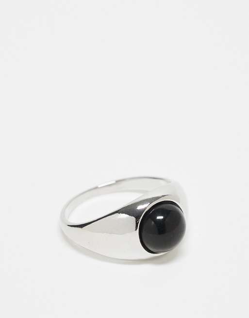 ASOS DESIGN – Silberfarbener Siegelring aus schwarzem Achat-Halbedelstein