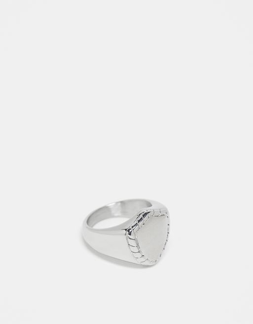 ASOS DESIGN – Silberfarbener, wasserfester Edelstahlring mit Wappendesign