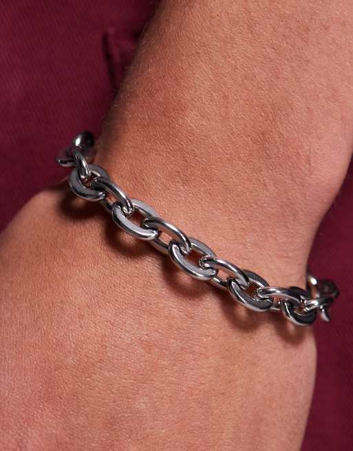 ASOS DESIGN – Silberfarbenes Festival-Armband mit großen Gliedern aus wasserfestem Edelstahl
