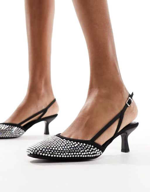 ASOS DESIGN – Sindy – Verzierte Schuhe in Schwarz mit mittelhohem Absatz