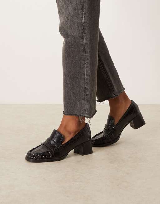 ASOS DESIGN – Siren – Loafers in Kroko-Schwarz mit mittelhohem Absatz