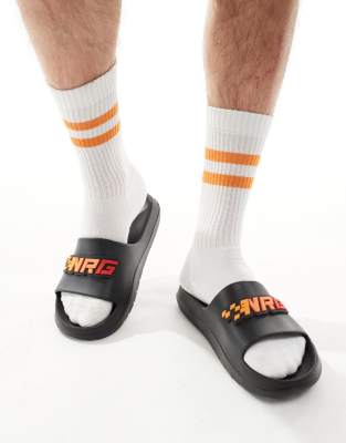 ASOS DESIGN – Slider in Schwarz mit Motocross-Emblem