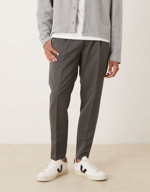 ASOS DESIGN – Smarte Hose in Anthrazit mit schmal zulaufendem Bein und Bügelfalten