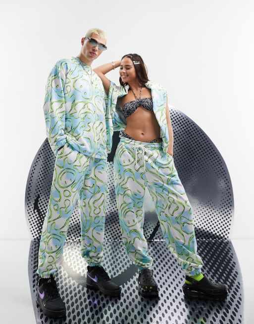 ASOS DESIGN – Smiley Collab – Unisex-Jogginghose in Blau und Weiß mit Smiley-Muster