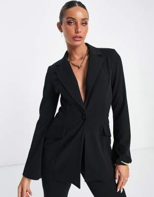 ASOS DESIGN – Smoking-Blazer aus Jersey mit Ärmelschlitzen in Schwarz