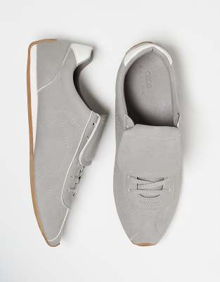 ASOS DESIGN – Sneaker in Grau mit Retro-Flair und Oversize-Lasche