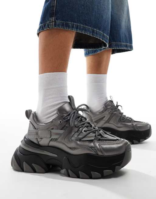 ASOS DESIGN – Sneaker in Stahlgrau mit dicker Sohle