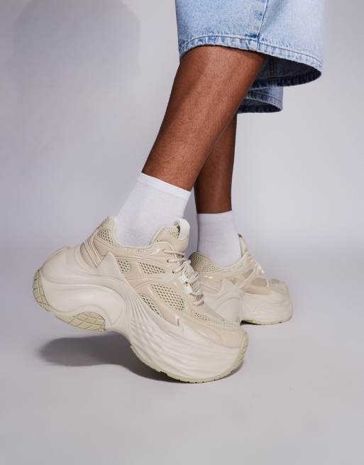 ASOS DESIGN – Sneaker in Steinbeige mit dicker Sohle
