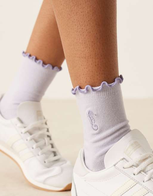 ASOS DESIGN – Socken in Lila mit Seepferdchen-Stickerei