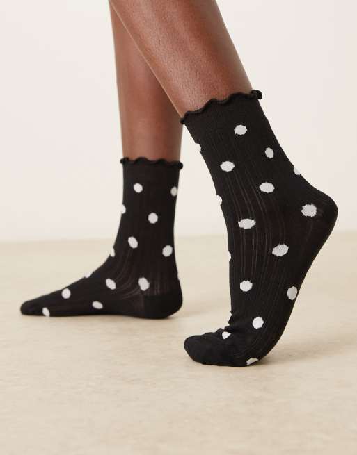 ASOS DESIGN – Socken in Schwarz und Weiß gepunktet mit Rüschensaum