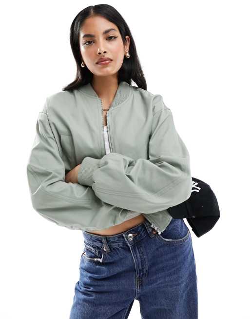 ASOS Design – Sommer-Bomberjacke in Khaki aus gewaschener Baumwolle
