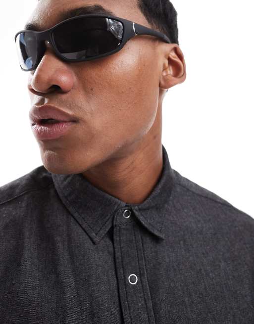 ASOS DESIGN – Sonnenbrille mit mattschwarzem, geschwungenem Gestell und getönten Gläsern