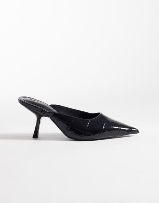 ASOS DESIGN – Sophie – Pantoletten mit mittelhohem Absatz in Kroko-Schwarz