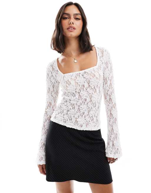 ASOS DESIGN – Spitzenoberteil in Elfenbein mit eckigem Ausschnitt
