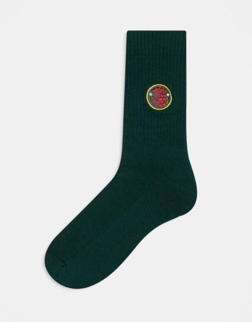 ASOS DESIGN – Sportsocken in Mittelgrün mit kunstvoller „Take a Hike“-Stickerei