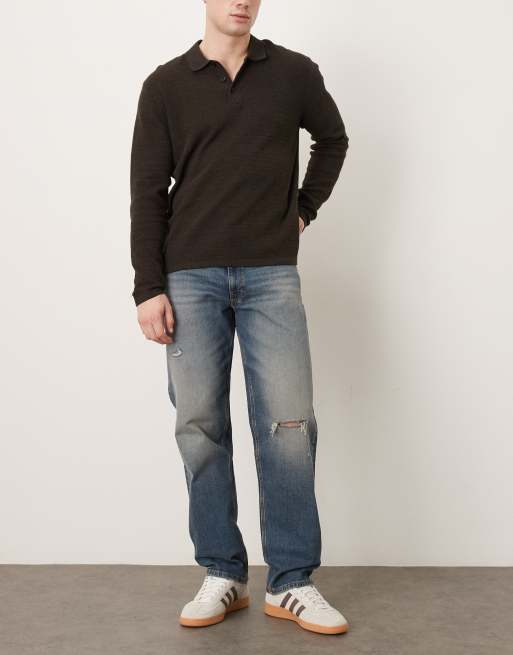 ASOS DESIGN – Straight Jeans in hellblauer Waschung mit Zierrissen am Knie und Farbstich