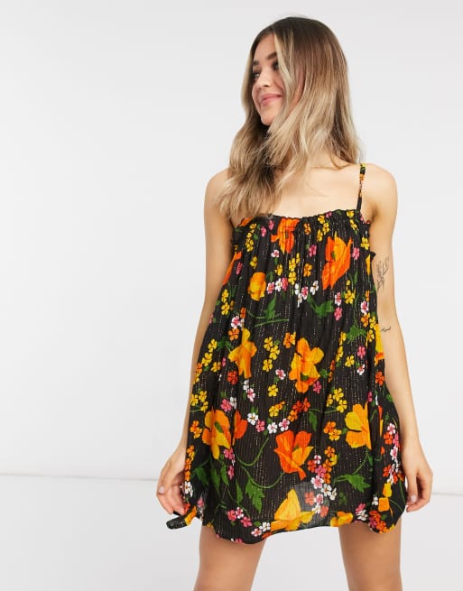 ASOS DESIGN – Strandkleid mit Blumenprint und Flattersaum