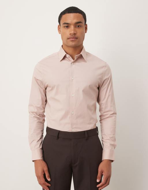 ASOS DESIGN – Stretch-Bürohemd in Hellrosa mit engem Schnitt