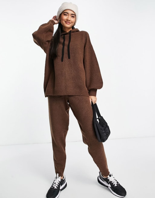 ASOS DESIGN – Strick-Set aus Hose und Oversize-Kapuzenpullover in Taupe