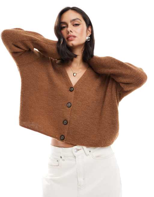 ASOS DESIGN – Strickjacke im lockerem Strick-Look in Braun mit V-Ausschnitt