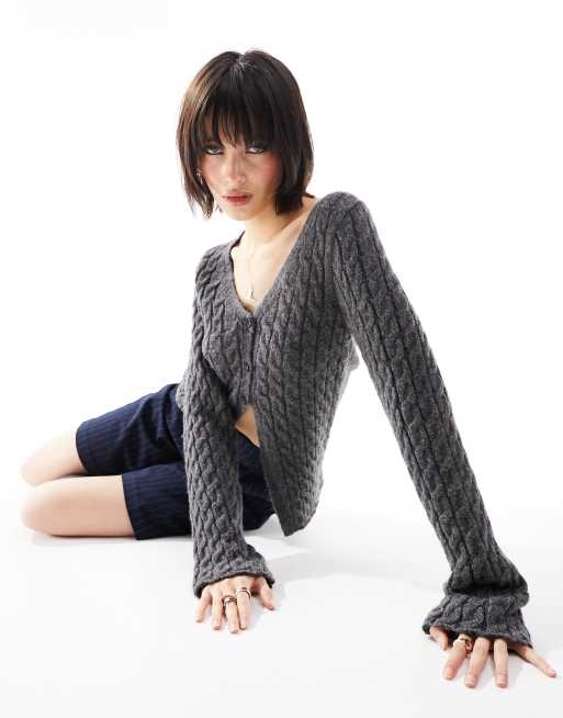 ASOS DESIGN – Strickjacke in Anthrazit mit Zopfmuster und Schlitz vorne