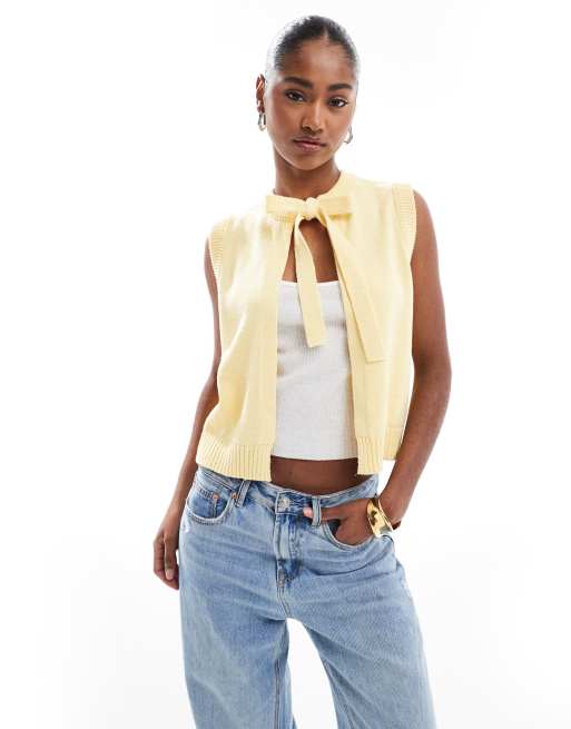 ASOS DESIGN – Strickjacke in Buttermilchgelb mit Schleifenbindung am Hals