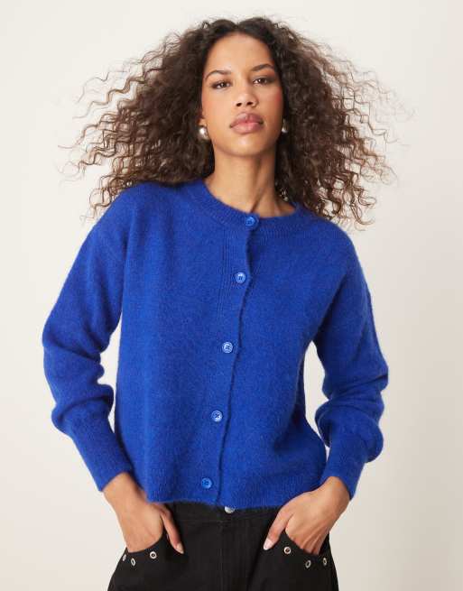 ASOS DESIGN – Strickjacke in Kobaltblau mit Rundhalsausschnitt