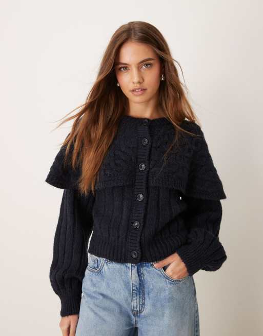 ASOS DESIGN – Strickjacke in Marineblau mit Zopfmuster und Cape-Detail