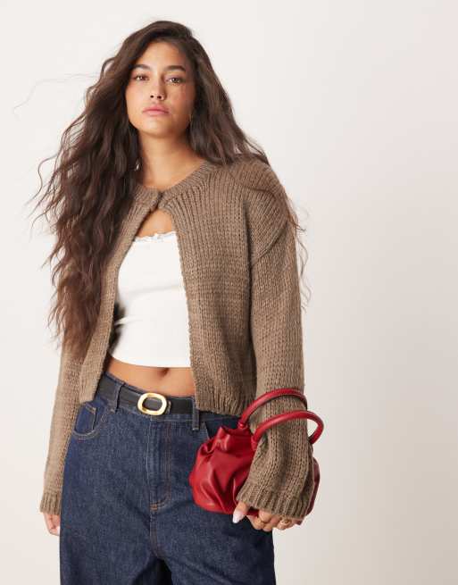 ASOS DESIGN – Strickjacke in Mokka mit Rundhalsausschnitt und Knopfleiste