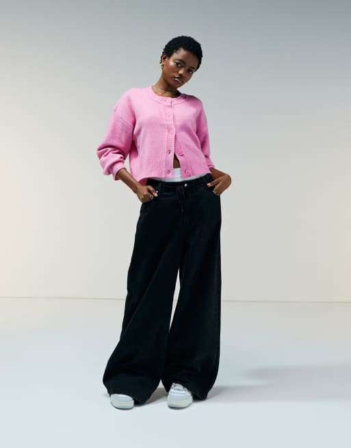 ASOS DESIGN – Strickjacke in Rosa mit durchgehender Knopfleiste und Rundhalsausschnitt