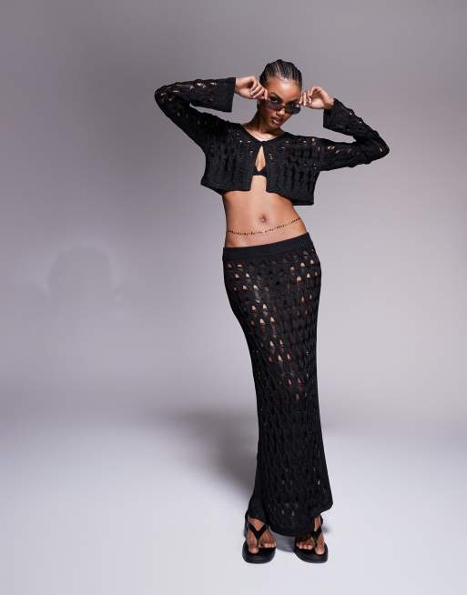 ASOS DESIGN – Strickjacke in Schwarz mit Laufmaschenmuster, Kombiteil